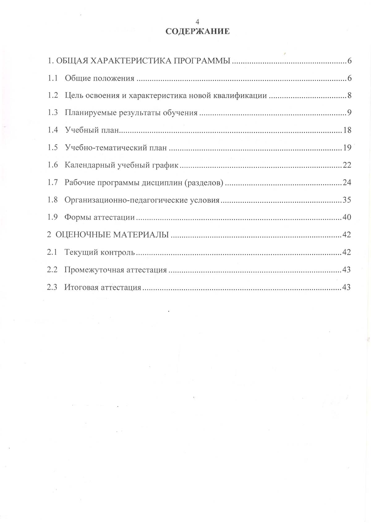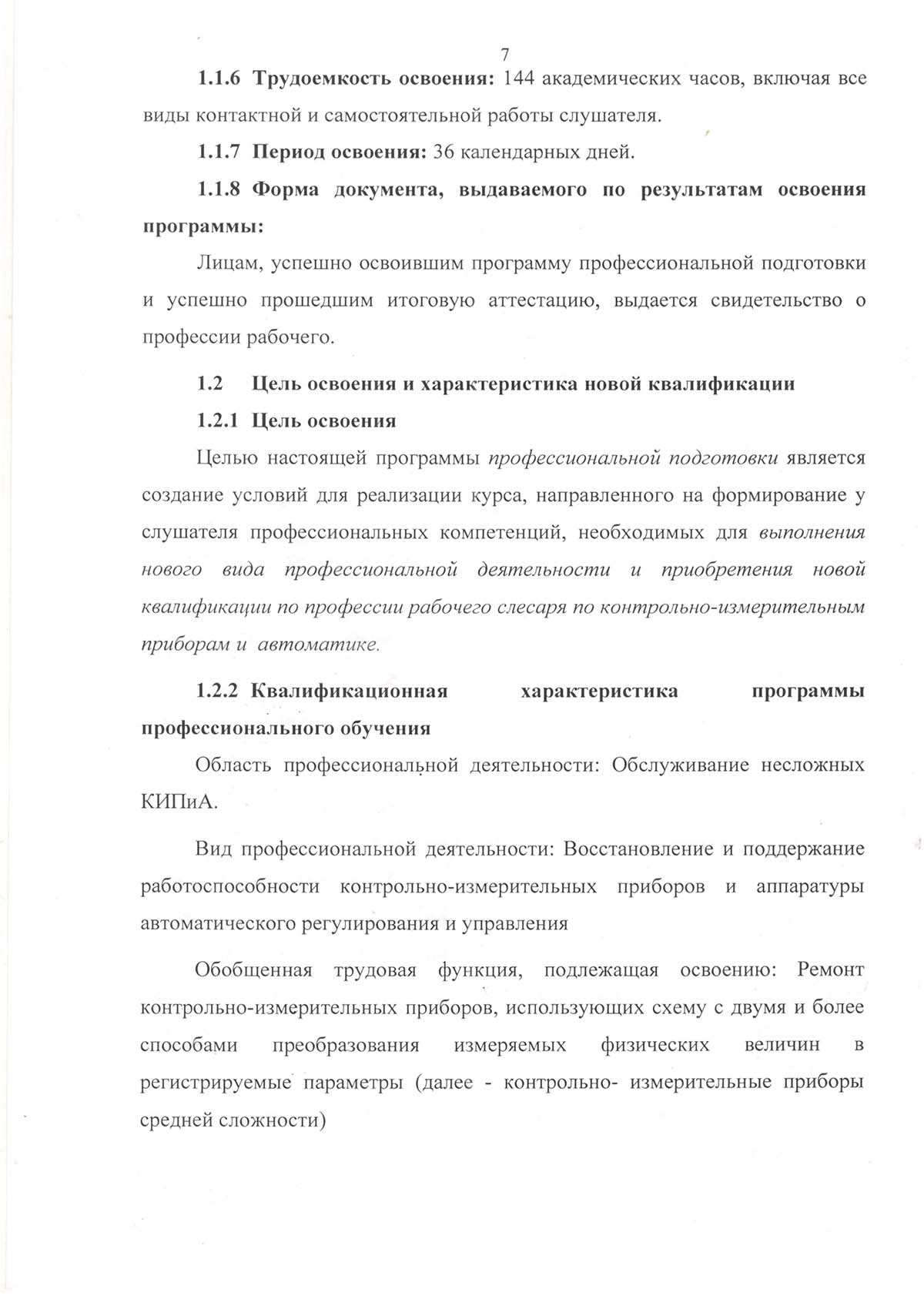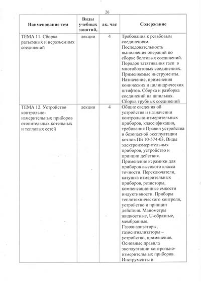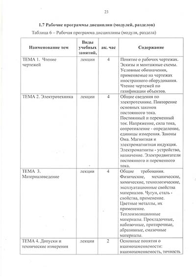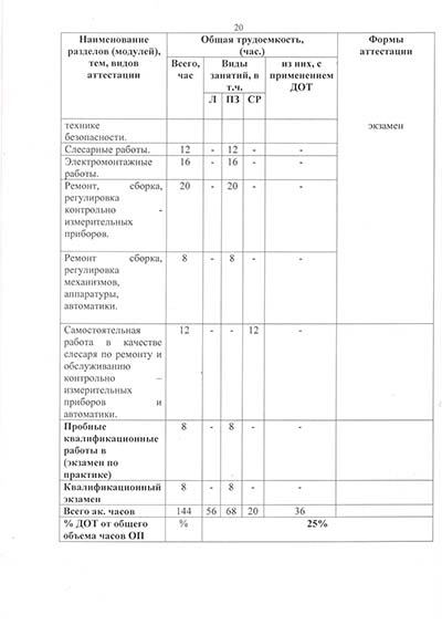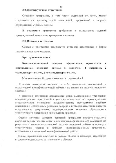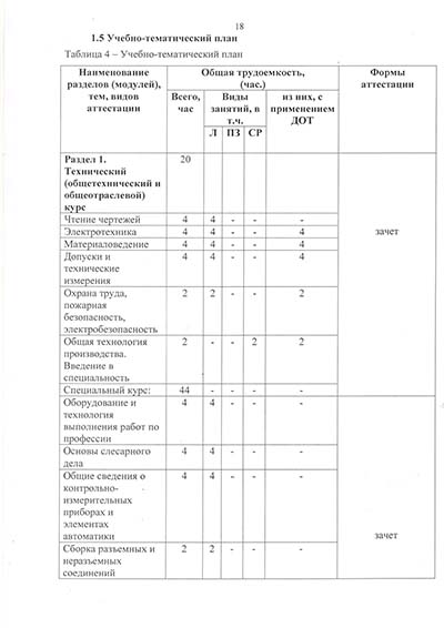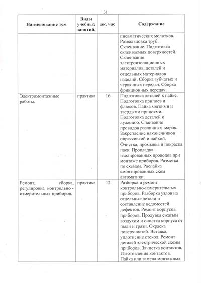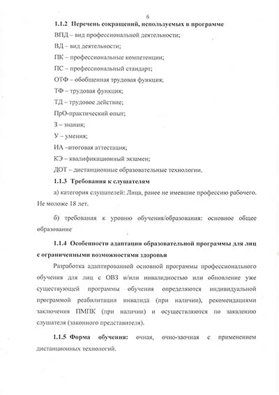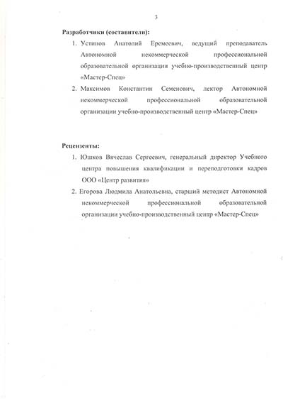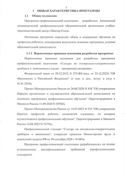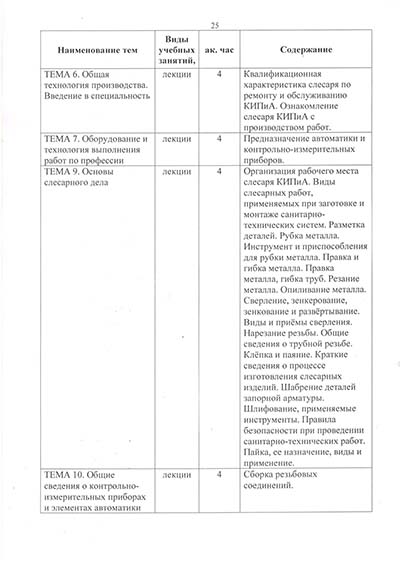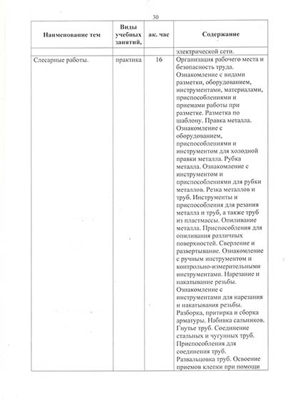 Программа подготовки по профессии рабочего