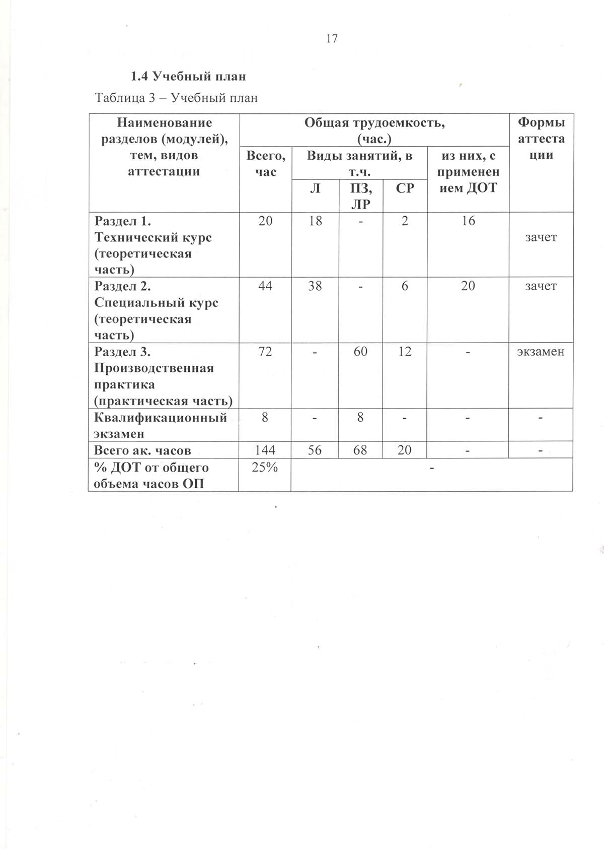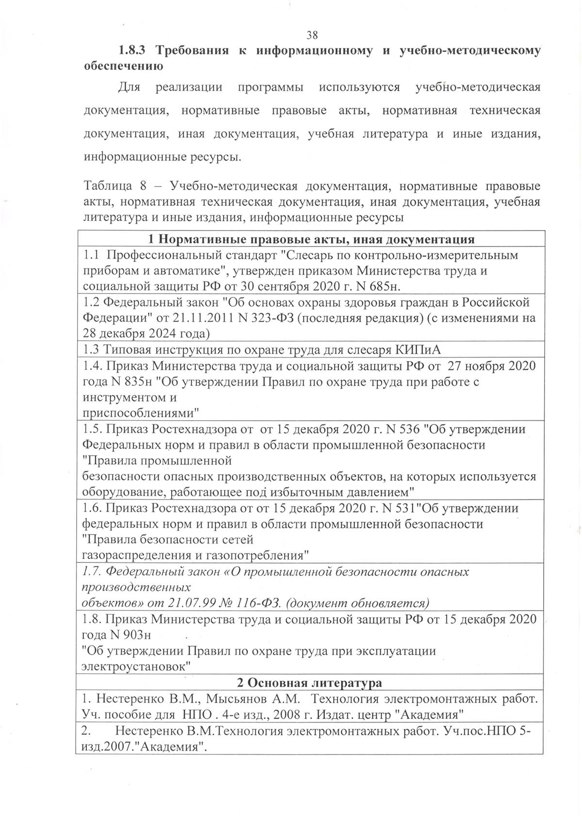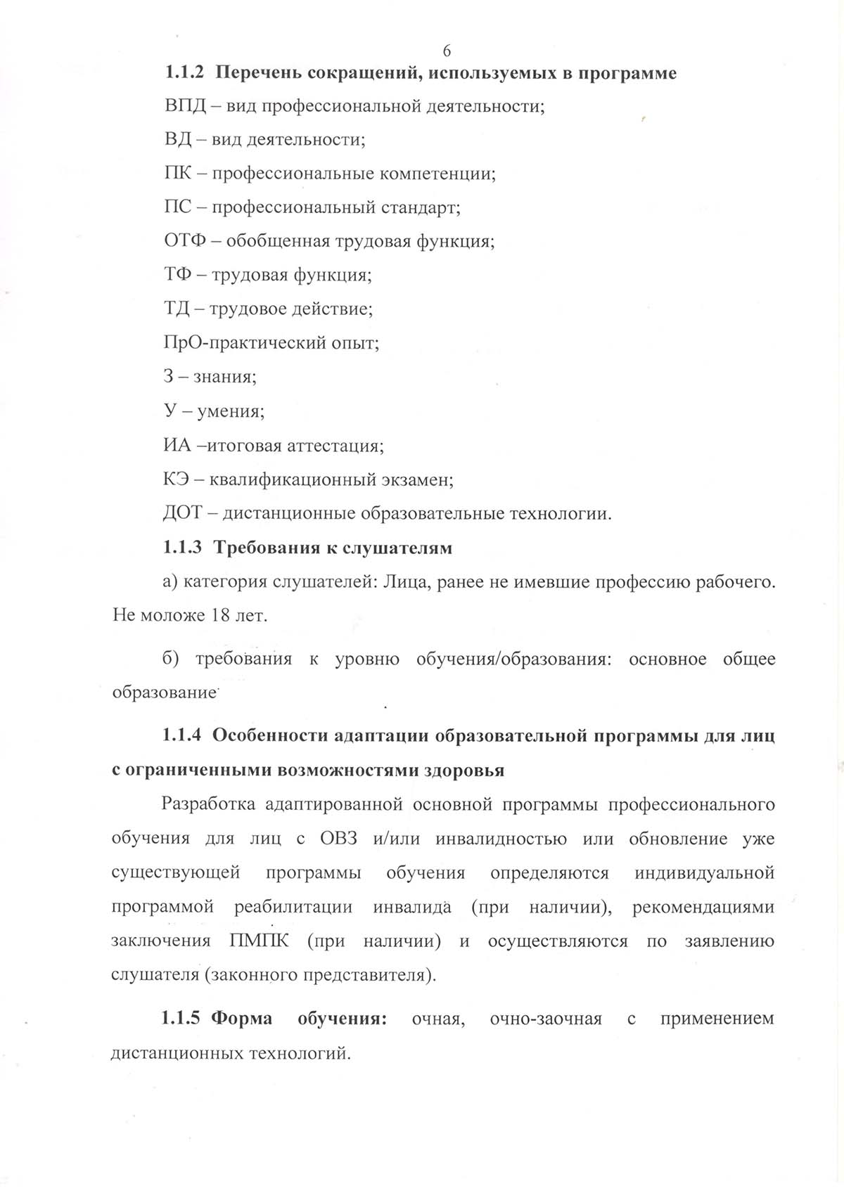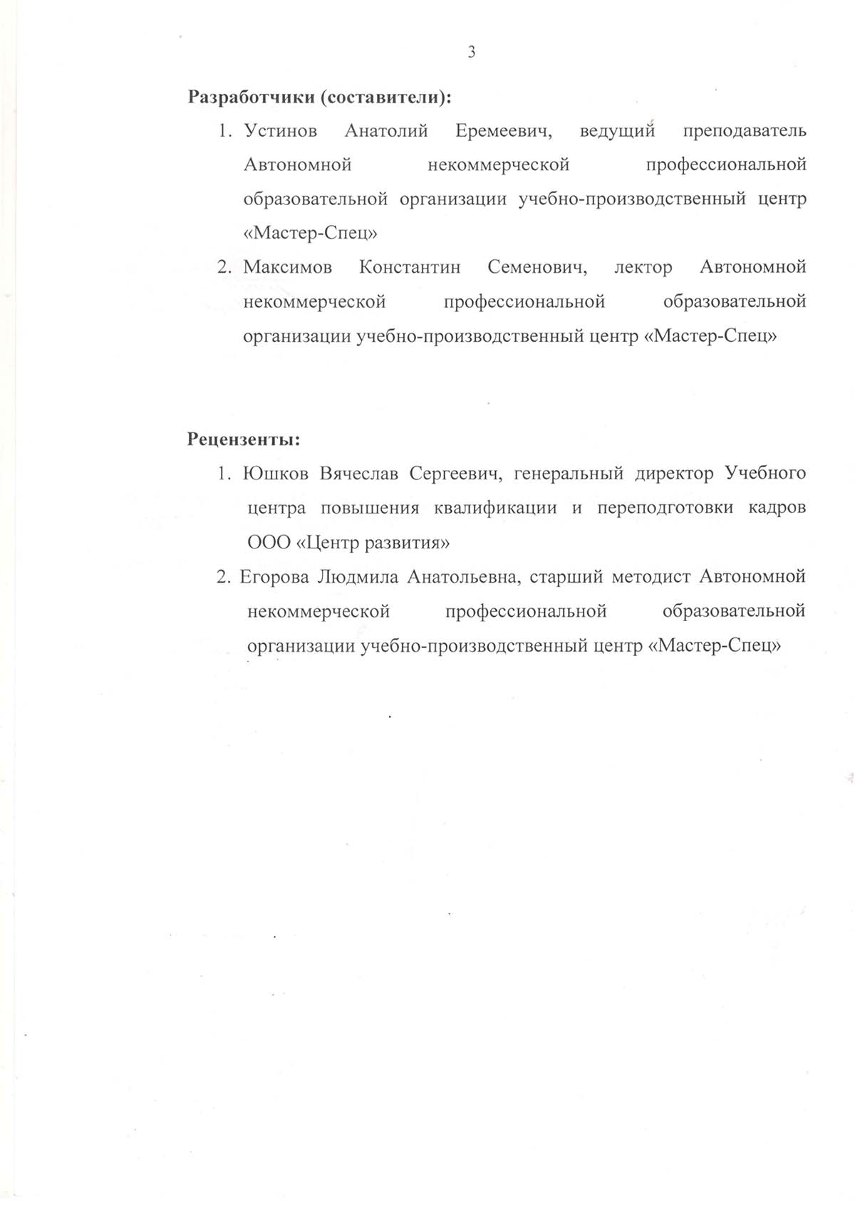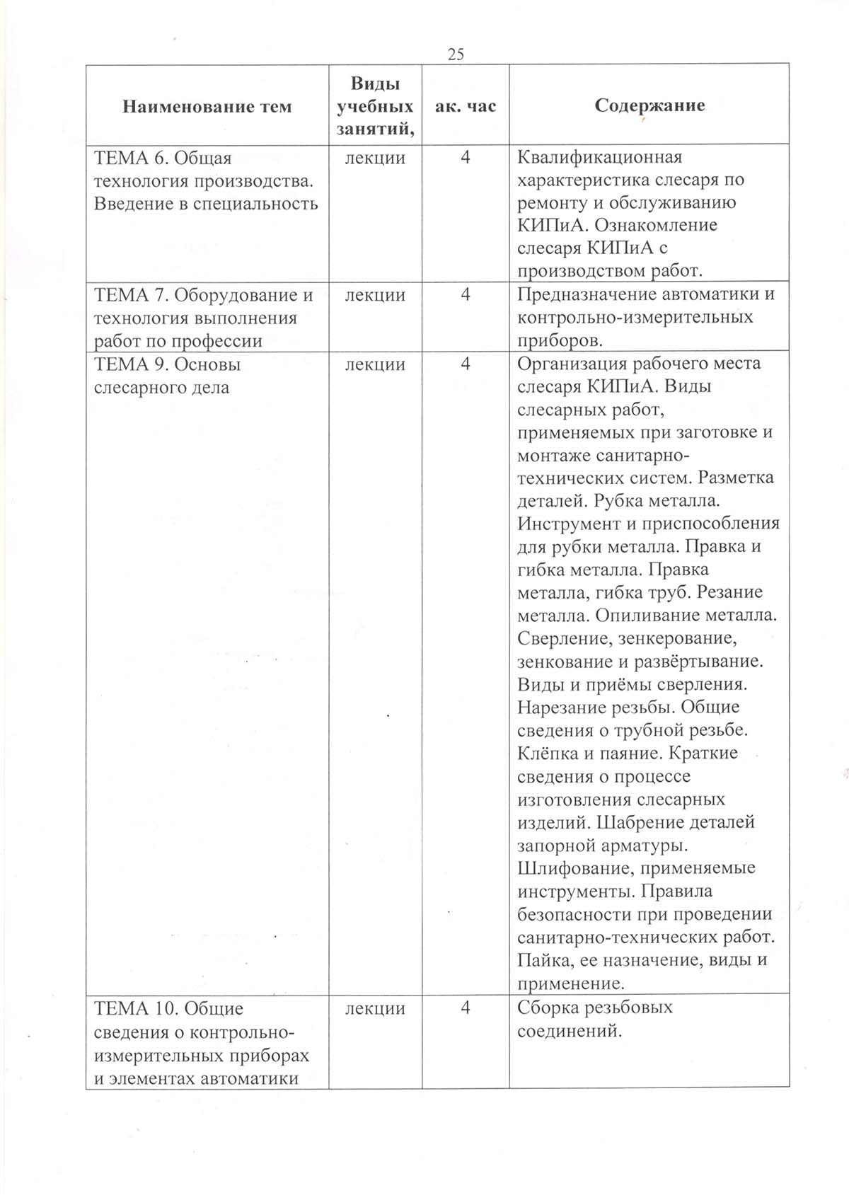 Программа подготовки по профессии рабочего